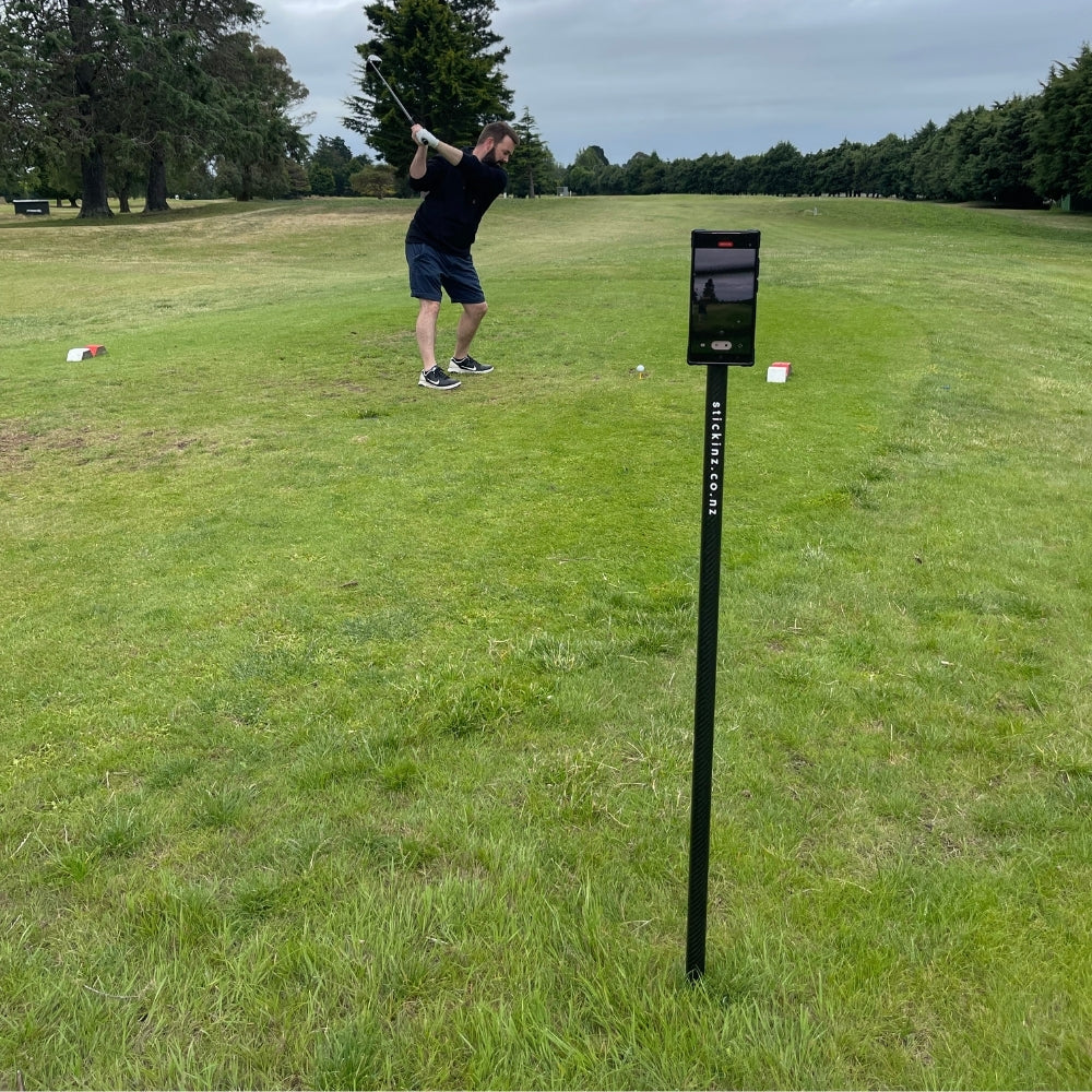 Stickinz is the easiest way to record your golf swing. Just stick it in the ground, snap your phone onto the magnetic holder, and start recording.